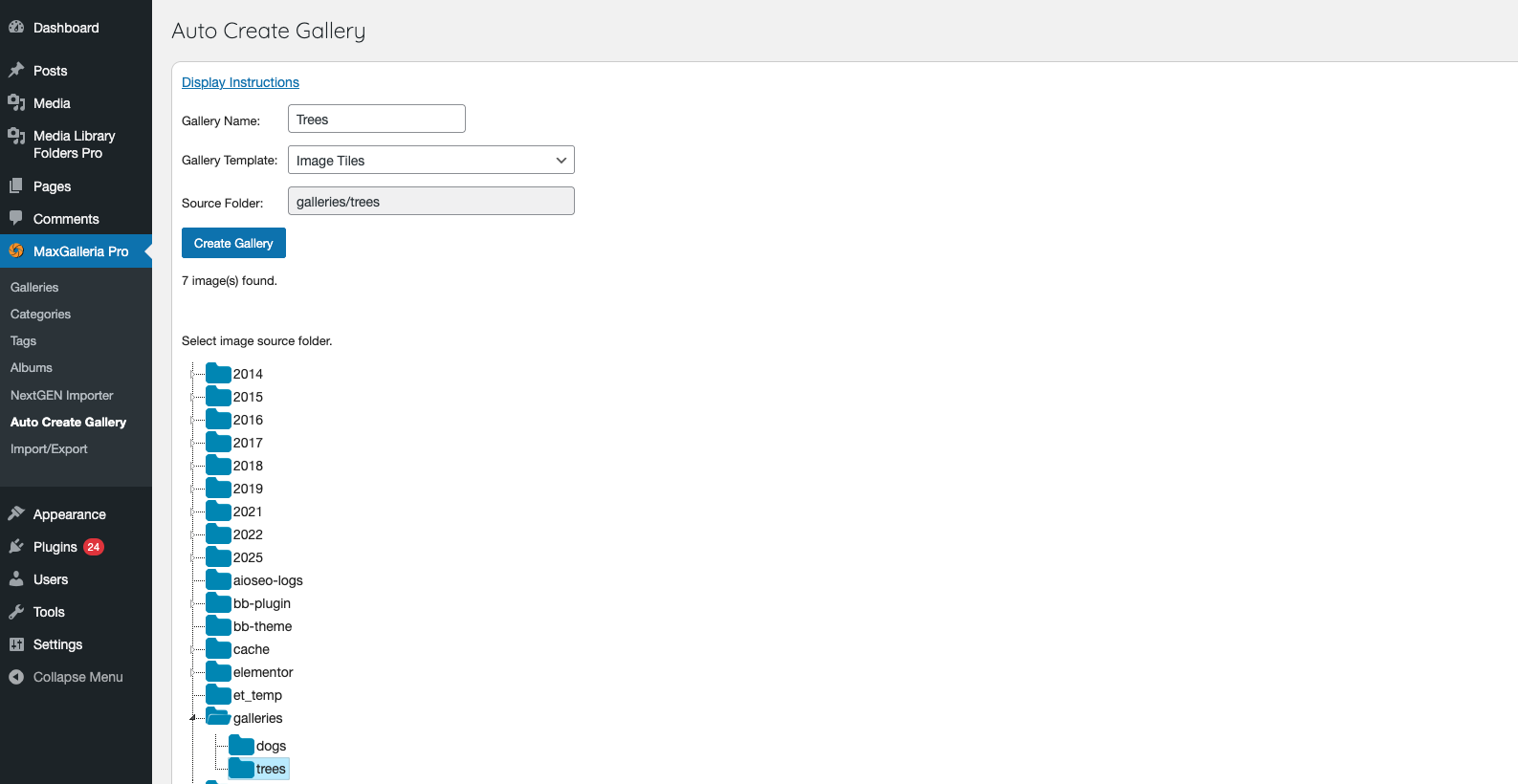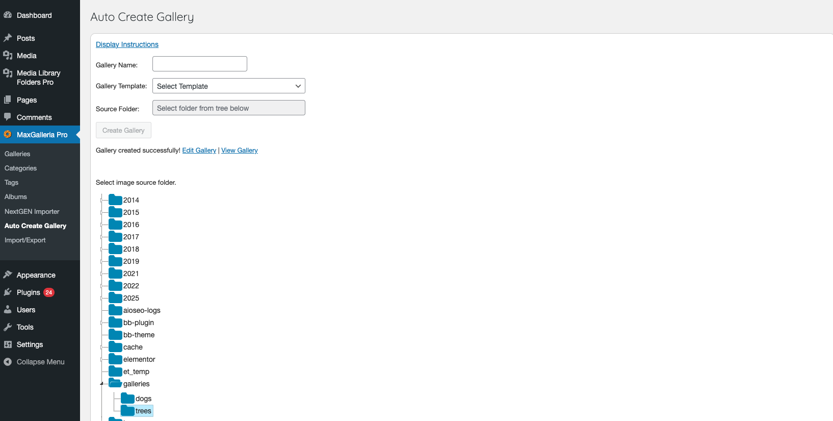 Click “Create Gallery” to instantly publish your new gallery and fill it automatically with all the images from that folder.